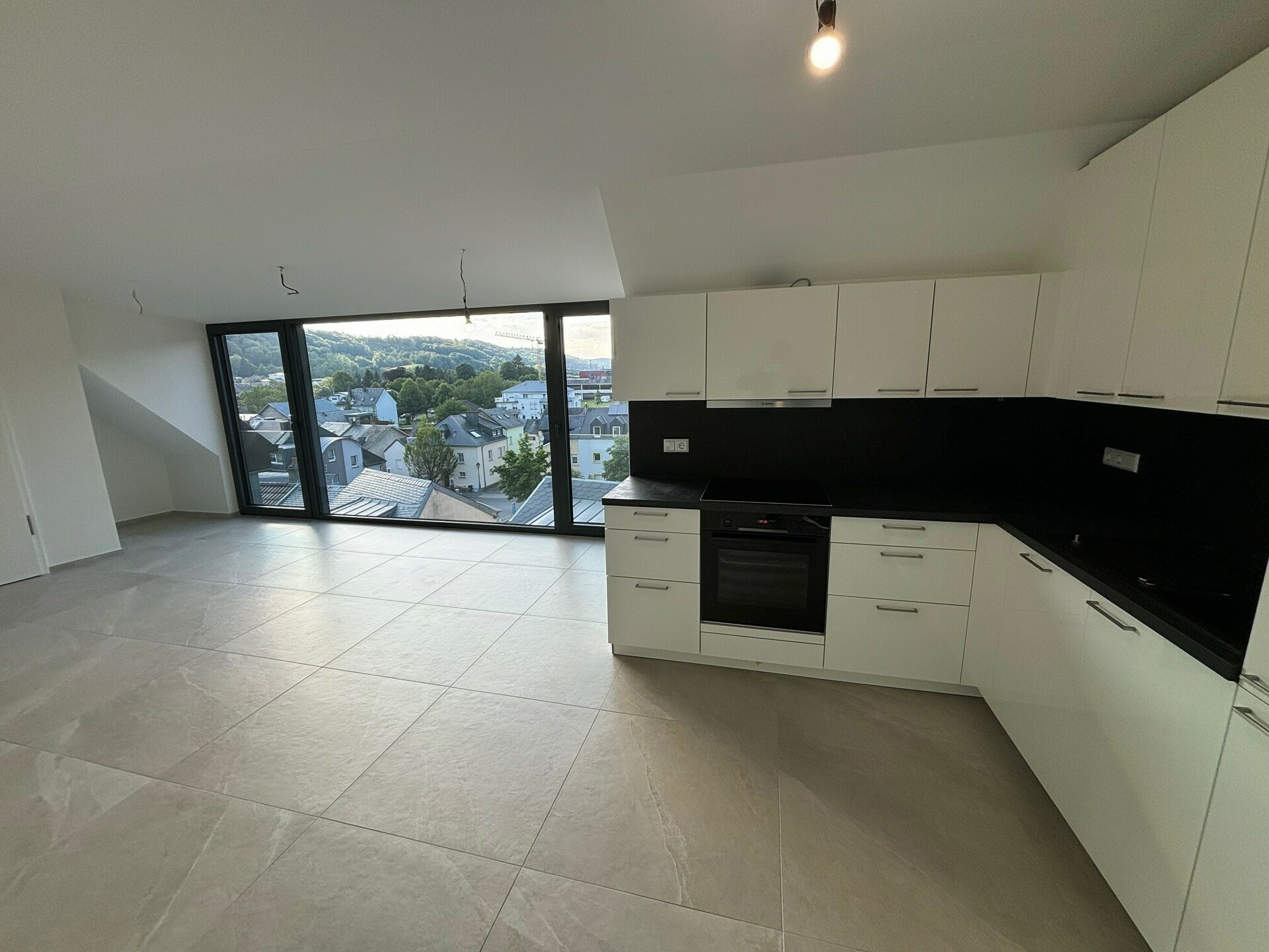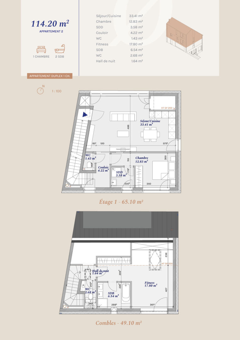 Duplex/Penthouse d'une superficie de +/- 114.20 m2 situé au 1er et dernier étage de cette maison bifamiliale.