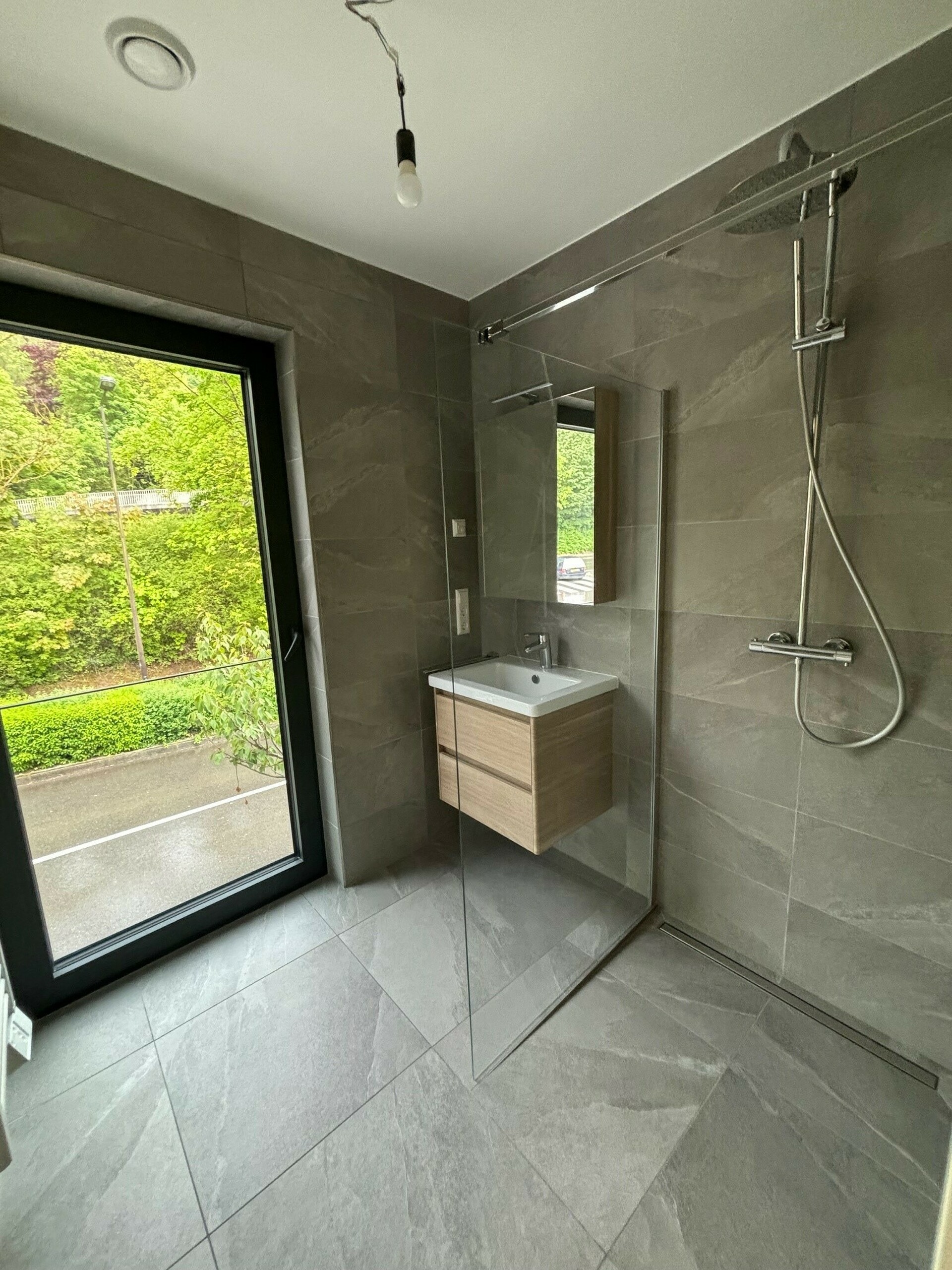 au premier niveau : d'une cuisine équipée ouverte sur un vaste séjour/salle à manger de +/- 33,41 m2, d'un couloir desservant un WC séparé ainsi qu'une chambre à coucher de +/- 12,83 m2 avec sa salle de douche de +/- 6,54 m2.