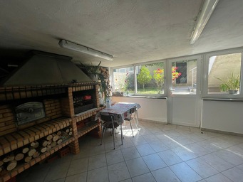 Au sous-sol : une grande cave avec cuisine d'été et une seconde pièce vitrée équipée d'un superbe feu de bois.