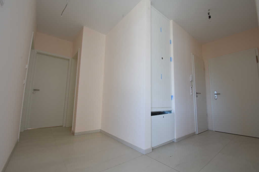 Il se compose comme suit : d'un hall d'entrée, deux chambres à coucher dont une dispose d'un dressing et d'une salle de douche privative, d'un WC séparé, d'une salle de douche avec douche à l'italienne, d'une cuisine équipée ouverte sur un vaste living donnant accès au balcon de +/- 6,93m2.