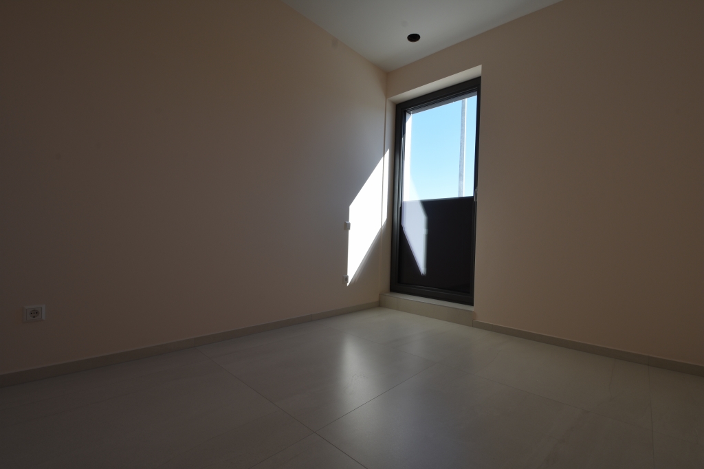 It is composed as follows: an entrance hall, two bedrooms—one of which features a dressing room and a private shower room—a separate WC, an additional shower room with a walk-in shower, and a fully equipped open-plan kitchen leading into a spacious living room with access to a balcony of approx. 6.93 m².