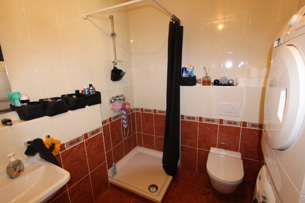 It consists of : an open-plan kitchen leading into a living room with access to the balcony, one bedroom, and a shower room.