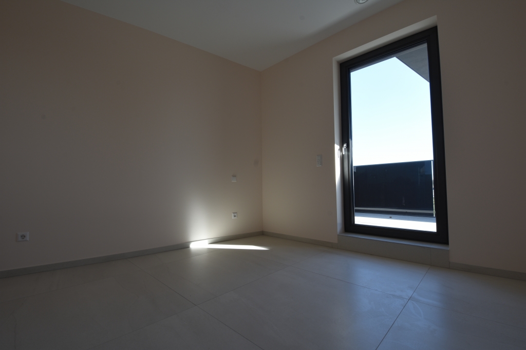 The apartments are equipped with underfloor heating, mechanical ventilation, triple-glazed windows with aluminum frames, and external blinds (raffstores).