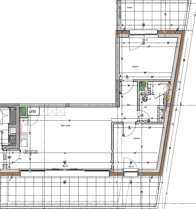 Les appartements sont équipés d'une installation de chauffage au sol, d'une ventilation mécanique contrôlée, de fenêtres en triple vitrage avec des châssis en aluminium et de raff stores.